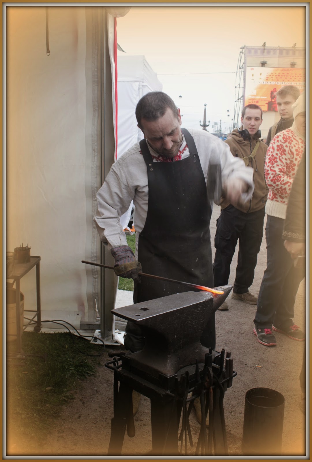 Нам раздали програмки, в которых указаны шоу кузнецов, шествие оркестров и шоу боевых искусств. Только никто не знает где и когда будут эти самые шоу - ни девушки с бирками "организатор", ни сами богатыри. Рассматриваю программку и думаю - почему боевые искусства - это шоу? Это же искусство. А работа кузнеца - тоже шоу? Интересно, а чья работа ещё шоу...Хотя по телевизору сейчас шоу из всего делают, чему удивляться.